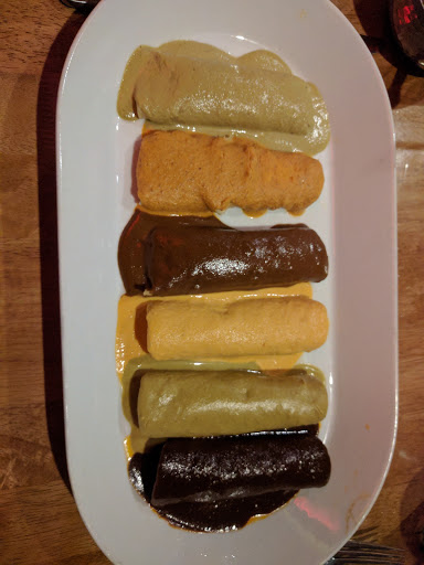 This place was great - servers were super friendly, atmosphere was nice and food was good. The only thing holding me back from a 5 star was the mole enchilada dish. I wasnt a fan of all of the moles. It was an impressive story (they make 18 different moles and have a rotation of them), and served 6 different moles at a time. The tamales and 3 different flans were amazing.