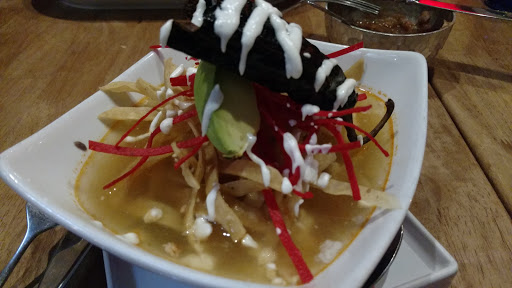 Food was just OK, definitely overpriced. For example, the guac was a small serving for $10 (and slightly on the bland side), the shrimp tacos were very very small (shrimp was rubbery and tortilla was dry/stale). Also the tortilla soup came with an inedible black Chile on top. The Chile didnt add any flavor so I was confused as to why it was served with the soup unless it was to justify the high price? Service was quick but awkward. For example, the owner (chef?) came over to our table 6 times. Another strange thing is that this chef never once stepped foot into the kitchen but rather spent all the time in the front of the house. While I dont expect the executive chef to run the line or even expedite, I do expect they would want to spend some time in the kitchen. The waiters were clearly being micromanaged and were not allowed/trained to explain the specials. Instead the owner came over and showed the specials on an iPad in a friendly (but sales-y and way over-the-top) way. Waiting staff were friendly but seemed very skiddish. Another awkward example was when the waiter took our plates away and asked us to hold the silverware but didnt provide a clean surface for us to put it down on (we just ended up holding the silverware till the next dish came out about 5 minutes later). Atmosphere is nice, outdoor seating is very nice, but the restaurant was pretty dead inside. I want to like the place but unfortunately, I wont be back.