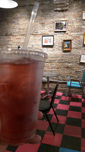 I really like this place but the service isnt always the nicest and the people who frequent it always look like they have some sort of stupid dance party to go to. However, the food is pretty delicious and the coffee in my opinion is pretty standard- nothing terrible, nothing flat out amazing, but always good. What makes up for it is the free Nintendo+big screen TV with an assortment of games, local advertising of different events, free wi-fi, and some seriously comfortable couches/chairs (that is if the little hipster girl with the maroon tights and condescending look didnt snatch it first).