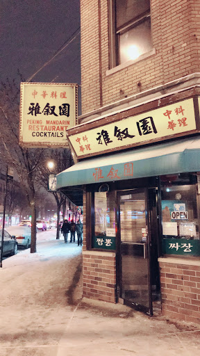 I read the reviews on Yelp and Google and formed a favorable impression of the restaurant, so I decided to order from here because its close and my husband and I were dying for Chinese takeout. (I had looked at GrubHub and it seemed that all the Chinese restaurants on GrubHub were dreadful according to Yelpers and Googlers.) I read that the Mongolian beef at Peking Mandarin was fabulous, as well as the Korean dishes, but since I was in the mood for Chinese, I decided to skip the Korean dishes. I ordered over the phone with a menu I found on MenuPages and the woman on the phone at the restaurant was easy to talk to (not always the case with ordering Asian food over the phone). My order was ready and quite warm when I arrived (it stayed hot while I walked it into the grocery store for beer and then home through 20˚ weather) and the lady at the counter was very nice. All the food was well-wrapped... but this was where my joy with the place began to pale. When I got my food home, I discovered that the portions were generous. Thats good. What was not so good was that the eggrolls were the standard, probably previously frozen Chinese eggrolls, with that bubbly fried-then-frozen-then-refried gummy shell texture and dull cabbage innards, and the refrying had been overdone, so the eggrolls were burnt to black. Oh, and there was no mustard. The crab rangoons were better-fried (read: not burnt), but while they were well-filled with cream cheese, there wasnt any crab in them. My husband and I are both familiar with the sad but necessary tradition of trying to find at least crab texture in our rangoons, and I can state with confidence these did not have any crab in them. None. At. All. The hot and sour soup was unique and tasty. It had a seafood blend in it that was interesting, plus there was a good amount of tofu, and the soup did not have that typical, bland, vinegar-y hot and sour soup flavor and cornstarch-thickened texture that is so ubiquitous these days in Chinese restaurants. The Mongolian beef (which, according to Yelpers, is the best Chinese thing on the menu and is worth traveling all the way to Albany Park for) was pretty good, but not really worth the Yelpers adulation. It was a very large portion, very meaty, and subtly seasoned (none of that acrid vinegar nonsense here that one often finds with Chinese entrees). The green onions were fresh, and the steamed rice it came with was also fresh and perfectly textured... but I still wasnt wowed by the entree overall. Oh well. Perhaps the Korean there is really amazing, but the Chinese certainly wasnt. One really awesome thing about it is that while my husband and I have delicate digestive systems, Peking Mandarins food did not attack us in any way, which shows that the food we ate was probably cooked in a clean, well-kept kitchen and not filled with additives. In summary: their wonderful service and propinquity will bring me back happily for a lunch special, but I dont think theyre worth the dinner prices.