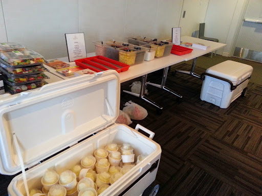 Chicken breast bland. The large size frozen yogurt is not a large in size. No need for me to go back. Bathroom has a terrible odor.