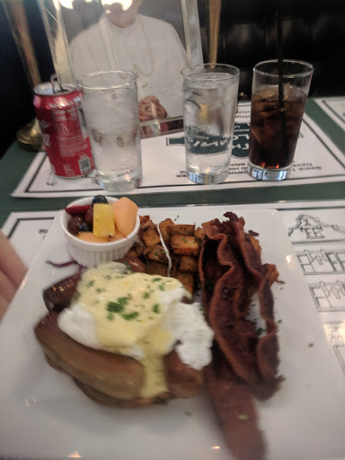 tl;dr: The food was fantastic, service was excellent, and the atmosphere was wonderful. Long version: I went there with my brother and happened to eat during one of their gospel brunches. The owner was singing with the musician and I had one of their St. Benedict eggs benedict (including the processional). The eggs benedict consist of three poached eggs sitting on some very nice sausage, over a thick slice of bread and topped with a hollandaise sauce. They bring out a portrait of Pope Benedict with candles, so that you can "dine with the pope". I sampled my brothers creme brulee french toast... Ive never heard of it before and it was fantastic. I had such a good time that I followed up my initial order with a steak and creme brulee. Both were very, very good. Over all, it was wonderful! I have never had more fun having brunch (or had such a hard time walking after a meal).