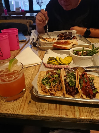 Loved the food! Some of the most interesting Cole slaw ever, and that is a positive statement, not snark. We had both pulled pork and beef brisket sandwiches (yea, in spite of the name they do have a few beef and chicken dishes) and one was as wonderful as the other. Great interior, a modern rustic, if you will; even better tunes played by management. The only caveat - arithmetic may not be your servers strong suit, so double check your bill.