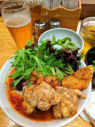 Chicken Ramen spicy with an extra egg. Fn great! Currently #1 in my Chicago Ramen rankings. They were out of pork last time I went... so Ill have to stop back in to try it out. Could live without the octopus balls appetizer. I was surprised to hear it was a chain.