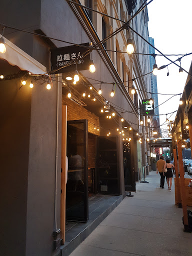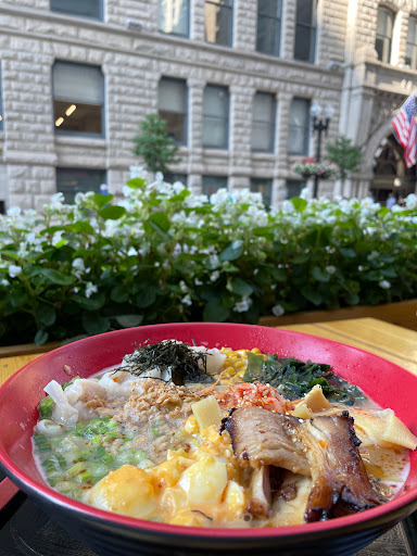 Finding good ramen in downtown Chicago is very rare. Thankfully, Ramen-san has opened up shop on Hubbard St., and its open late night along with lunch on weekdays! Ive been there about 15 times since its been open, and this is what I think: Ambience: For lunch, its a nice place to meet a friend or coworker. The noise level is pretty low, and it isnt super crowded (it could get a little bit crowded on Friday lunch though). For dinner, this place is absolutely hopping! It gets packed and they have some loud music playing. The decor is pretty modern, making this place a perfectly decorated ramen restaurant. Service: Quick and efficient, yet you feel like youve been taken care of. Great staff! Food: Ive had all the ramens, and they are all really good except for the vegetarian, which should be a bit more flavorful. They use Tokyo wavy noodles made by Sun Noodle, and these are honestly the best in the country! The meat-based broths are filled with flavor, and the bowls are filled with meat, noodles and other veggies! The apps are all delicious, and the drinks are pretty refreshing here. For lunch, they have a fantastic lunch deal that will keep you coming back. It consists of a large half a bowl of ramen, a salad, a rice dish with meat (salmon, chicken or steak), and kimchi all for just $15 =) Tip: Ask for the punch card - get the 10th ramen free =) LOVE Ramensan!