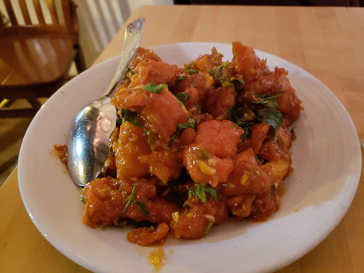 I do have a confession to make I dont like a whole lot of Indian places in Chi town which I like so I wasnt expecting this spot to be great either but it was a pleasant surprise. During our recent trip we were craving some good Indian food and decided to venture out of downtown area. The location of this area is quite unassuming and there are not a whole lot of eateries around this place. The place itself is not huge but has some decent seating area , the white wall background with dim lighting added up to the décor. They have a menu which is a good mix of traditional Indian and some Indian fusion(Indian Chinese) fare. We decided to try to both , we indulged in - * Gobi Manchurian - Tender pieces of cauliflower cooked in tangy, sweet and spicy sauce. Cauliflower is coated in a flour layer before tossed in sauces. * Paneer Masala - Indian cheese cubes cooked in creamy tomato sauce. * Lamb Biryani - Traditional basmati long rice cooked with curried meat. * Plain and garlic naan - Bread with butter and garlic flavor. First the food overall was really good.Gobi Manchurian is a must try it had some really good flavors. The entrée paneer dish was also tasty , we wanted little more spice so we got the Indian pickle on side($1 extra). Biryani was also really flavorful and it is recommended to pair it with raita(curd with mix veggies). It was definitely worth driving from downtown to eat at this restaurant.