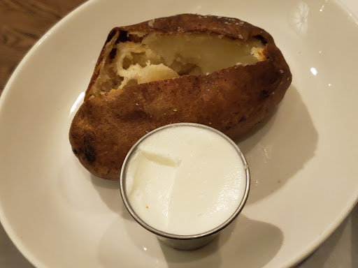 We a very enjoyable dinner here. We were seated at a table so we had a view of the pier. We started with the calamari and roasted beet tower. The calamari was cooked very well, crispy, light and not chewy at all. The aioli was good too, and I am not a fan of aioli. The beets were good as well, fresh and crispy, and sprinkled with cheese. Yum. She also had the lobster corn chowder, which she said was better than she expected, she is not a fan of corn chowder. For dinner she had the Australian Lobster Tail, 12 oz. and i had the petite filet. Both our meals were cooked exactly the way we wanted them. I had asparagus parmesan or something like that, it was excellent. She had the sauteed spinach and a baked potato. She could not finish her meal, and I was satisfied with flavor, price and amount of food. The service was excellent, and the meal experience just made our date night that much better.