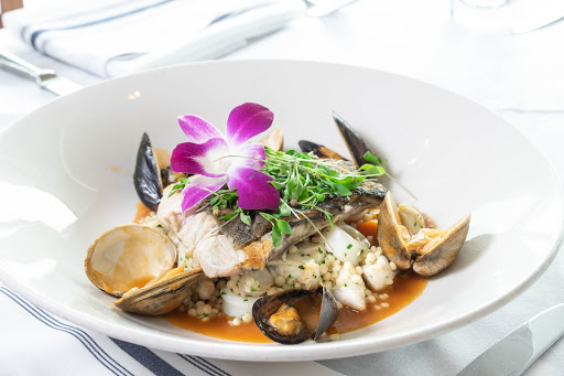 This was our first visit to Rivas and our first visit to Chicago. We were looking for a restaurant on the pier so we could look out over the water while eating. There werent a lot of choices and we were skeptical about eating in such a high tourist area. We were pleasantly surprised at the food quality and the ambience. I had the scallop fettuccine. The fettuccine was nicely cooked and covered in wild mushrooms. The mushrooms were cooked perfectly and added a delicious flavor to the light sauce that was on the fettuccine. The swiss chard added a lovely texture to the dish. While this dish only had three scallops, I could barely eat the last one. They were rich and perfectly cooked. A beautiful pan sear on the outside and moist and delicious on the inside. My husband enjoyed the pappardelle with jumbo lump crab. This dish was filled with crab and the toasted almond cream sauce was just the right lightness for the dish. The tuscan kale gave the pasta dish a nice crunch. We were both extremely happy with our meals. If you go in the summer make a reservation around 8:30pm and enjoy the fireworks over the water while enjoying your food. The fireworks are only on Wednesdays and Saturdays. Dont let the tourist area of this restaurant steer you away from some very good seafood.