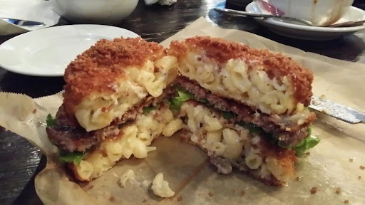 We went there toward the end of a Cubs game and were there before the crowd. However, our server forgot to put in our drink and food order so we had to ask a manager to take our order again and wait until most of the big crowd was served. They were apologetic, gave us a free appetizer, and a $20 gift certificate for the next time we eat there, which was appreciated. When the food finally arrived it was very good. The macaroni is great and so are the macaroni bites. The Mac attack burger wasnt what we expected - it was fried mac and cheese as the bun and a very thin burger (compared to the others); it was impossible to take a bite fully-assembled because the "bun" was so thick.