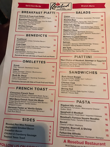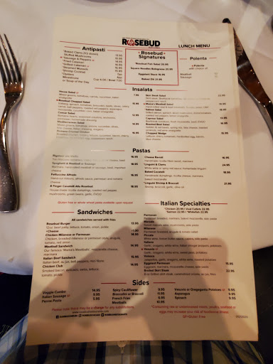 My husband and I had lunch at Rosebud on Rush August 3rd. We had the pleasure of meeting two Managers on duty that day, Dimitrios and John. We were treated with outstanding hospitality and service and felt after leaving that day, we had genuinely made new friends. Truly excellent customer service that made us feel very much at home. We enjoyed an incredible burger, shrimp roll and rigatoni alla vodka, all large portions and absolutely delicious. Our special thanks to Dimitrios and John for taking such good care of us and making sure we had a great experience. Thanks to both of them and their kindness we will definitely recommend this wonderful restaurant and return every time we are in Chicago! Just go, you will LOVE it!!