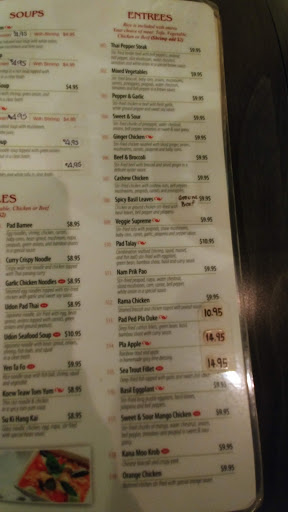 I am a regular customer to this place for my thai food in the neighborhood. If you do take out, the food will be ready quicker (On Sundays - about 15 minutes), but if you do the delivery, it will take about 45 minutes. The place is on the ground level with no access to the wheel chair... Food itself is decent. Their noodle dish are not bad. I usually enjoy below menus; Druken noodle (Very thick noodle..I love it with beef) Red Chicken Curry Green Curry Fried Rice I am still look for more authentic Thai restaurant...I am from NYC...so I guess my standard is high for Asian food...but this place is really decent.