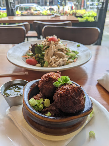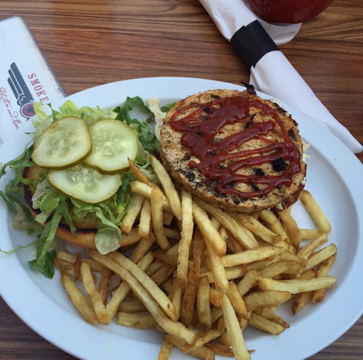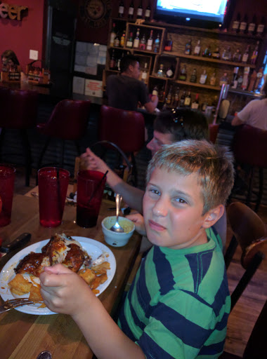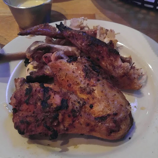 This is a spot that will make everyone happy. There are two separate rooms with bar in each and several large screens for the sports fans. There is live music at times in the first room...and when there isnt, its blues and jazz that youll hear over the speakers at just the right volume. The second room, with an all-glass garage door that opens onto the patio in the warmer months, is perfect for gazing through in the colder months. I didnt even have a chance to get bored of doing so, as the service was super speedy…on a friday night! The staff here truly knows the meaning of teamwork, and they are attentive without being obtrusive. I tried both the baby back ribs and wood-roasted chicken, which were very good and not at all dry. I was so happy to see sweet potato fries among the large offering of sides. The only thing missing for me is a great, well-balanced and seasoned BBQ sauce--its not bad, but not the best Ive had.