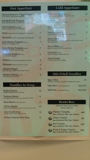 Ordered sushi gyoza and chicken skewers, snow shrimp, and everything was good. No complaints