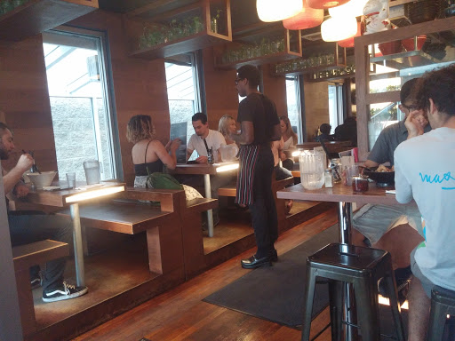 Last month, I was visited by my brother from Boston, and a good friend from Argentina. The weather was beginning to show hints of fall, with dryer air, cooler breezes, and the aroma of leaves changing. We had a hankering for soup, so decided to try this place out. They were here for 4 days, and we went 3 times. As a long-time cook, and someone who regularly creates dishes from scratch, I was very impressed. Also having made my own soups, I really appreciated the depth of flavor in the broths, and the simple beauty of the whole tasting and eating experience. The ramen was perfectly al dente- Ive never had a more well-cooked noodle, and its made fresh every day. The servings are generous, and the toppings are nicely displayed. The ambiance is great, they mostly play low-key, trip-hop type stuff, and they also have an interesting style of booth seating that I really liked for aesthetic reasons (check out the photos). It was a really great experience, and every time Ive gone back, its been continuously awesome. I recommend going with a really good friend or partner; someone you can laugh with, and someone who likes good food. Youll be happy you did!