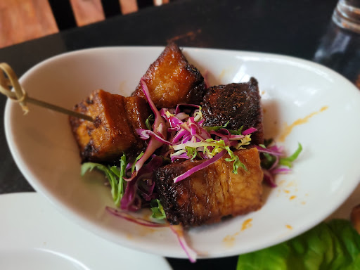 I had high expectations for Sunda, and they were met in some areas, but not all. The best item we sampled was the Crispy Brussels Sprouts, a superb house specialty; thin slices of broccoli are almost toasted, then tossed with red cabbage, carrots, chilies, fried shallots, and minced shrimp and served with nuoc cham (a rice wine vinegar dressing). I couldn’t stop eating this! Tiger Shrimp Tempura was interesting in that it was served with candied walnuts, but the creamy honey aioli was really slathered on and made it very rich. “Grilled Spare Ribs” are actually Korean style kalbi ribs, not my favorite. Sushi was less inspiring. We tried several house special rolls, and none was greater than the sum of its parts. Spicy Salmon Shiso was particularly odd, with very finely ground salmon tartare and a dollop of sriracha on top of a thin slice of jicama and a shiso leaf. The ingredients were fine when picked apart, but the combination was a bit of a mess. The wine and beer list in interesting, with many selections, including some excellent Champagnes, available by the glass. The space is stylish and vibrant, and the service was efficient, if not inspired.