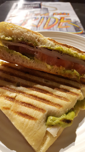 Good quality coffee, a step above basic chain stores. I had the veggie sandwich ( artichoke and olive spread) it was tasty, however overpriced in general, especially considering the size of it. Still a nice place to relax, read a book (lots of free newspapers) or do some homework. They have free Wi-Fi and public restroom.