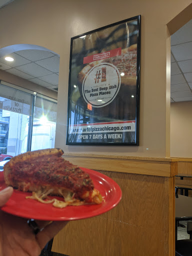 Deep dish pizza by the slice!! Yes thats right - no more waiting an hour for a table and then an additional 45 minutes for your pizza to come to you. My boyfriend and I went here and got 2 slices of the Arts Meaty Delight deep dish ($3.95 each) and a piece of french bread ($1.75). Since it was a Tuesday, their special was a meatball sub for only $3.99!! I was so excited because I love a good meatball sub. I asked the cashier what I should get, a meatball sub or a slice of deep dish. He replied in his naturally monotone voice "well, were known for our pizza so..." haha I love it. So honest. All in all, the pizza wasnt piping hot - or even hot. It was just warm.. I would have loved to take it home and pop that sucker in my toaster oven (that I just bought from FB marketplace for only $10! Im sorry, Im so excited, what a steal that was) to make it more hot and have a crispier crust. For only $3.95, the quality of meat and sauce was definitely there though. Only complaint was that it wasnt hot but just barely warm. The garlic bread consisted of butter and garlic powder. Not too much of a fan since I prefer real garlic but the boyfriend had no complaints. Would definitely come back here for a slice to-go! So inexpensive!