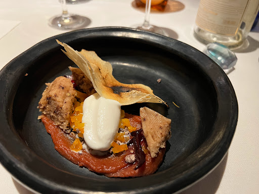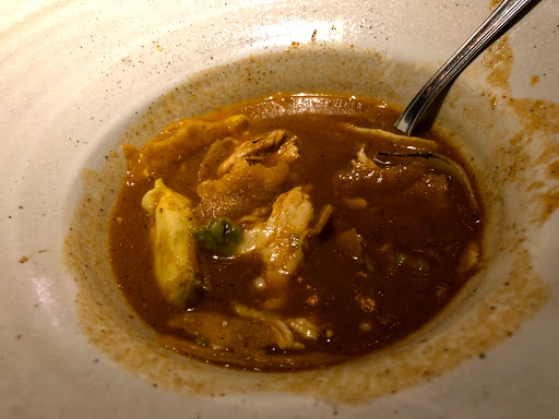 Some might now chef Rick Bayless from his series on PBS. In order to conjure up that memory you would have to reach way back to 1979, six years before my birth. You also may know him as the brother of ESPN announcer Skip Bayless. Others might know him as the very first winner of Top Chef Masters, also how I remember him. He went into that season and is portrayed as an underdog that rallies in order to win with his pedestrian Mexican dishes. We all want that which is comforting. I must admit it is hard for me to think of Mexican cuisine as something to be bought to a fine dining level. Once you taste the food here, you will be a believer. It was my first time at Topolobampo since Restaurant Week a year earlier, and I wish I would have went more often. In the meantime, my fix for Bayless dishes has been satisfied by eating at Tortas Frontera in the Chicago OHare airport. If you ever fly through OHare, it is a good place to stop in for a quick bite before your flight leaves. I often stop there if I have bags to claim on the way back as it gives just enough time for the bags to start at the baggage claim carousel. Dinner at Topolobampo is definitely a classy white tablecloth fine dining experience. The octagonal brown floor tiles break through any since of pompousness that may be present and bring things back down to earth. Combine that with the beautiful low hanging blue lights and comfortable booths and you feel as comforted as some of the amazing dishes you will eat. You would be remised to come all this way and not enjoy one of the signature Margaritas. I went for the Blood Orange Margarita. They are shaken for you tableside. These drinks are dangerous as you taste the sweetness of the blood orange with a little tanginess from the lime juice and subtle floral notes from the tequila. All in all a pretty awesome drink. Guacamole and chips, take the place of the bread and butter here. Their Guacamole (Capital G used on purpose because Bayless guac is so good that should be referred to as a proper noun) is the best Ive ever tasted. If a place like Topolobampo seems a little out of your price range, you can also try this dish at Tortra Frontera, or at the neighboring (and much cheaper) restaurant Xoco. The restaurant week menu started off with Beet Salad. It was pretty tasty, and you had the yummy bit of peanut oil. To be honest though the beet salad at Aria was a little bit better, but not by much. I also found the orange in the salad slightly too bitter. I added in the Soupa Azteca between the appetizer and main course. It is essentially a Chicken tortilla soup so good that in the middle of a Michelin star restaurant, you have to use tons of restraint in order to prevent yourself from picking up the bowl and licking up the tasty broth. The elegantly plated thin strips of crispy tortilla along with tender chicken get the wonderful earthy broth poured over them tableside from a beautiful copper saucepan. One stir and you can scoop up a bit gooey melted cheese at the bottom with each bite. (A similar soup is also served at Tortas Frontera, but Ive had it and it is great but not quite as good) The main course was pork shoulder. It was served with this tasty earthy black bean sauce. The dish also had corn tortillas. Im not a fan of corn tortillas at all to be honest, but Rick Bayless is kind of like the Godfather of Mexican cooking, constantly making you offers that you cant refuse. The tortillas are light and dont have that heavy, overpoweringly strong corn taste to them. For dessert you get these very rich and buttery crepes, served with a nice sweet cinnamon ice cream.