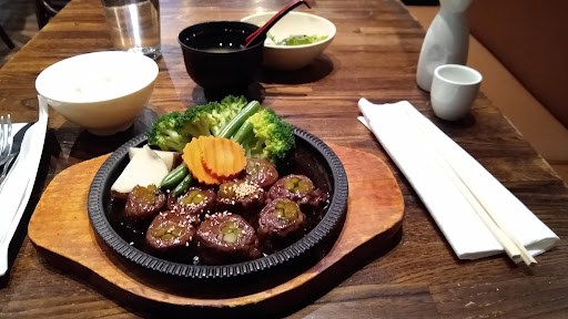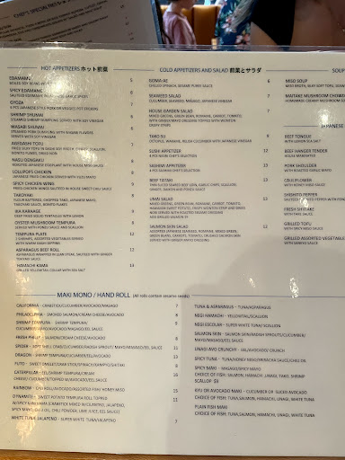 Umai has a fantastic atmosphere and decor. Modern and posh while still having a traditional Japanese feel. The wait staff was very courteous and helpful considering it was our first time there. The drink menu is very good and had one of the broader selection of Japanese beer Ive seen at a sushi joint. Plenty of options on sake as well, and with varying price ranges. As far as the food menu goes, there are a number of options for appetizers, both vegetarian and not. Tempura platter was very enticing, but when asked if the tempura was gluten free we were told negative. We chose the edamame instead. There is a slew of varying dishes including hibachi items, noodles and udon, Japanese BBQ, and, of course, sushi/sashimi. Good thing about the latter items is every specialty item can either be had a maki mono or as a hand roll which is different than most sushi places Ive been to. Umai has a great selection of gourmet sushi options, some that are a bit edgy, plenty that are more traditional. Fits well with their decor if you ask me. We settled on a spider roll (a tempura-stuffed roll with radish sprouts), spicy tuna, and negi hamachi (yellowtail). Also ordered a bowl of miso. Everything loved up to expectations. Miso had a very good consistency, tofu was diced small but the texture was just right for the soup. All the rolls were superb. Tightly rolled and decorative. Speaking of decorative, the plates and bowls matched the overall feel of the place, too. Thats something many Asian restaurants fail to do, but Umai did it well. Overall ambiance and decor helped to complete the experience. I have only two detractions from our time there: lack of truly gluten free items such as the tempura and soy sauce (my wife has gotten used to checking the latter when we go out); and higher prices than we expected on some of the specialty rolls which prevented us from trying something a little more adventurous. Ill partially forgive this last thing because it is downtown Chicago after all. Overall, a great experience and one Id want to have again if Im ever back in town with time for lunch or dinner.