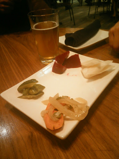 Its one of my favorite LA burger places (a micro-chain, more accurately), and I was happy to see one come to Chicago. Short version, I like it and am glad its here, but it wasnt as good as I remember it being in LA, although maybe theyll get it worked out. One issue was that the burgers werent piping hot when they came out and cooled very quickly. The service was great: friendly, attentive but not overbearing, and quick with the food. Also very tailored to your preferences, from how they cook your burger to the order in which the food comes out and the sauce options. We tried the throwback and the Umami (because when in Rome). Both were good, there was a bunch going on but it worked. The throwback is supposed to be innout style, so its two thin patties with their twist on mustard, ketchup, pickles, onions, and cheese. The Umami was cheese and mushrooms, and maybe caramelized onions. Theyre willing to customize, take things off, put things on the side (unlike Fathers Office, for those familiar with the LA burger scene). The sweet potato fries tasted fresh, and like real sweet potato, with sugar and salt sprinkled on. The pickle plate is six different pickled items, so its interesting and a great way to start. Theres not a huge draft beer selection, but decent options. They werent exciting or new, but there was something to meet most tastes. Its got nice high ceilings and big windows, a bunch of tables, and a long bar.