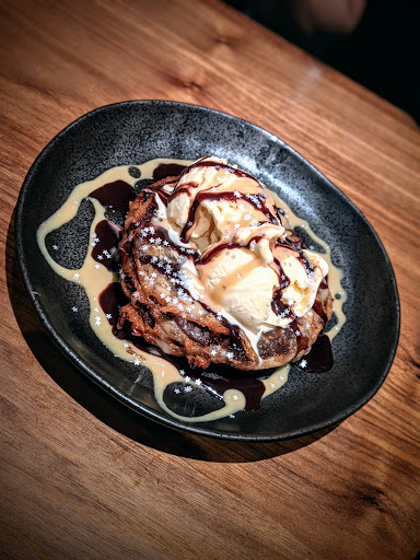Pretentious but the food is decent. I went there just a few minutes ago for a quick lunch on the way to a clients office. I was seated and the waiter came by and asked if it was my first time there. I said yes and he we welcomed me, thats where it got annoying. He then proceeds to tell me about the meaning of the word Umami, says that the chef only likes to provide food the way it is on the menu and does not accept substitutions and then adds in that all their burgers only come medium rare so hopefully I like medium rare. I didnt ask any questions or prompt him for any of that he just spouted it off. I asked what he recommended and ordered sweet potatoes fries and a burger with green chilies. The food was decent although the brought 4 different sauces and a plate with some Asian style flat bottom spoons, Im not sure if the sauces were intended to be put in the spoons or what but it was just a little odd. The burger was decent cooked rare (not medium rare) which I didnt mind but if your going to make a point that the burgers only come medium rare then it should probubly have come that way. At the end of the meal the server handed me a token and asked that I place the token in a jar near the door, the jars are red yellow and green so they can figure out how the servers are doing. Its a weird system. I also overheard other servers giving the same blurb about what they could or couldnt order so I know it wasnt just my guy. Anyway the odd choice of staff training and the token thing is enough for me not to return for a $11 burger with $6 French fries (which was the cheapest burger). This place is no better then five guys but with an attitude.