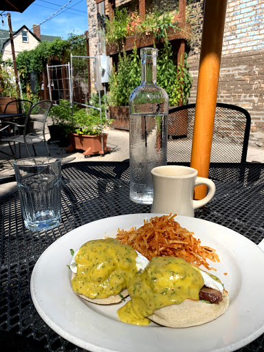 Stopped in for a Saturday brunch earlier this month. Had a delicious monte cristo sandwich with a side of the fantastic house chorizo. Food was plated in a pleasing fashion, with orange slices and a green salad. Very filling. My meal companion spoke briefly about the rooftop garden, but commented that that may have been severely curtailed, owing to it being Chicago in winter. Needless to say, a point in their favor. Service was excellent, with a special mention to the busboy who -- after asking the "how is everything" question and received an inquiry about hot sauce -- came back five minutes later with several different kinds hed managed to scrounge from various places. Atmosphere was very subtle and comfortable with dark paneling on a bright day, but my meal partner commented that she felt "short" sitting on the bench seating along one side of our table. Electric car chargers at parking spots are available, a fact still singular enough to get a bemused mention my review, but also with a humble acknowledgment that one was in use when we arrived.