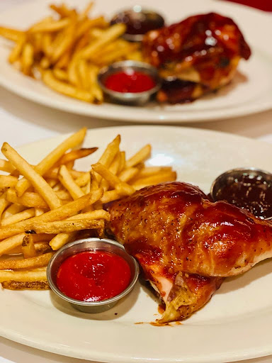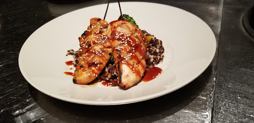 Weber Grill is owned by the same people that make Weber Grills...makes sense, huh? Even better, all the food is actually cooked on Weber Grills over Kingsford Charcol. There are 4 Weber Grill restaurants...Chicago, Schaumbrg, Oak Brook, and Indianapolis, IN. We chose the downtown location for a great date night. The downtown location is at State and Grand. We made 6:45 reservations on a Saturday night...good thing we did. We we walked in, the place was packed and there was a 2 hour wait for a table. We were seated right away at a table for two which shared a bench with other tables for two. Something Ive come to expect at the fancier restaurants but still really dont like. Its not intimate enough. We end up hearing converstations from the couples next to us and we were seated next to one of those obnoxious guys that is just out to score. The kitchen is out in the open and you actually walk through the kitchen to get to the dining room. You can see all the grills and all the food being cooked. We started with drinks. I orderd the Webers Backyard Brew which is brewed by Goose Island. Its similar to most of the domestic ales. My date got the Pomegrante Sangria. So good she got two. Before the appetizer, they brought bread to the table and yes, even the bread is cooked on the grill. The three rolls came with a cheddar-onion spread and whipped butter. The rolls had a outer smoke layer, but were soft and chewey inside. We ordered the Fire Grilled Pepperoni Pizza for an appetizer. Incredible flavor. Its more like a pizza bread, but you can taste the grill flavor on it. The pepperonis were much thicker than usual. The pizza was long and thin and had six slices. Great start to dinner. For entrees, I orderd the Wisconsin Burger. Its a 10 oz. burger with with applewood smoked bacon and cheddar cheese. Incredibly juicy...just like youd make in your backyard. That meal also comes with fries which were the only thing we had that wasnt cooked on the grill. Disappointingly, theyre just ordinary out of the bag fries. My date ordered the Sesame Honey Glazed Chicken which came on a bed of Chinese Long Beans, Carrots, Sweet Bell Peppers, Shiitake Mushrooms, Thai Basil and Bok Choy. She mentioned more than once that the chicken had quite a kick to it....not when you bit into but a strong, spicy after taste. Normally, I finish my meal long before she does, but this one was so good, she couldnt put her fork down. We were both too stuffed to try desert. Our bill with 3 drinks was under $60 and we were in and out in less than an hour. The manager came to our table to make sure we were happy and the waiter always seemed to be there at just the right time. Weber Grill is one of the best restaurants Ive ever eaten at. Im a big fan of Weber Grills and refuse to ever use propane to grill, so maybe I have a little bias, but the wood cooked flavor is magnificent. They take a lot of food you wouldnt think of grilling and make it taste great. Weber Grill is absolutely a recommendation that I would make to anyone who enjoys grilled food.