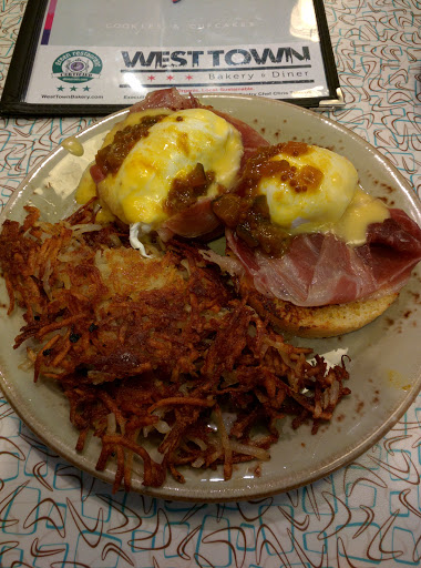 My son recently moved to the Ukrainian Village which is located just west of the Chicago Loop. I make excuses to visit my son (laundry, home made cookies, its my Birthday, whatever) but, its mostly to experience the culture of Ukrainian Village. So, its a Sunday AM and my hubby & I decide to visit our 2 boys in Chicago, I think I was bringing son #1 a most needed vacuum cleaner. After delivering the vacuum, its time for Brunch! We started walking east on Chicago Ave and came upon West Town Bakery & Diner. OMG! Its like entering the set of Happy Days (the sitcom) but, its real and its 2014. Very casual atmosphere, seat yourself...ok and get ready to experience a menu filled with 1950 favs but with a 21st Century epicurean twist. My son ordered the Morning Poutine, a bowl filled with french fries covered in meat and cheese. Usually #1 son eats super fast but, this Poutine was so large, it slowed him down. He did finish the entire Poutine, and he found it to be very gratifying. I tried the Short Rib Eggs Benedict. WOW! This is a dish you would never make for yourself at home due to all the work & ingredients, but it was divine! #2 son ordered the chicken and waffles, hubby had the regular Eggs Benedict and there were no left overs today! Waiting to pay our bill, I sauntered over to the Bakery counter and ordered some cupcakes (marvelous) and macaroons (french cookies). We have been to Paris & have indulged in Paris macaroons and West Town Bakery delivers the crisp, melt in your mouth cream macaroon the same as Paris. Great food, great $s! Cant wait to find another excuse to visit my 2 sons & experience West Town for another exceptional Brunch.