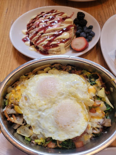 This is definitely a tourist trap, but we went for it anyways. And honestly, were not complaining. The wait looked horrendous, but they quoted 15 minutes. We went to get some coffee from Intelligentsia and they texted us about 10 minutes later (forcing us to rush back). However, when we actually got there, it was still an extra 5 minutes as they were setting up the table. I assume they do this to avoid late/no shows. The restaurant was packed, but we were seated comfortably at a 4-person table so we had plenty of room. I ordered the garden skillet ($12) with a side of fresh glazed strawberry pancakes. The skillets are served with toast or pancakes, and you can substitute for sub-specialty pancakes for $1.50 extra. My garden skillet had hash browns, cheddar and jack cheese, eggs, mushrooms, asparagus, spinach, onion, tomatoes, and broccoli. It was a very hearty and wholesome breakfast. I loved all the veggies, and Im really glad I opted for the garden skillet over one of the more protein-centric ones. The pancakes were good too although nothing out of this world. Im just a sucker for fresh strawberries on anything. All in all, not a bad breakfast at all even if it is filled wall-to-wall with tourists (including myself!). I know there are definitely better places to get breakfast but for the price, quality, and proximity to our hotel, this was a reasonable choice for us.