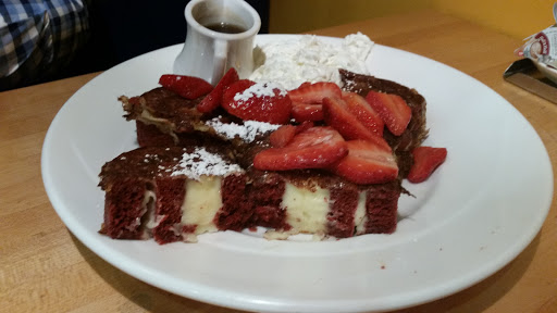 Spent a weekend in Chicago and ate breakfast here each morning. The service is quick and friendly, the food comes out at an unexpected speed considering how busy they were both mornings, and the taste was amazing. I ordered the red velvet french toast stuffed with cream cheese and topped with strawberries, my wife ordered the special which was a pumpkin french toast stuffed with cream cheese and topped with roasted cinnamon apple slices and cranberries. We liked them both so much the first time we ordered it again the next day.