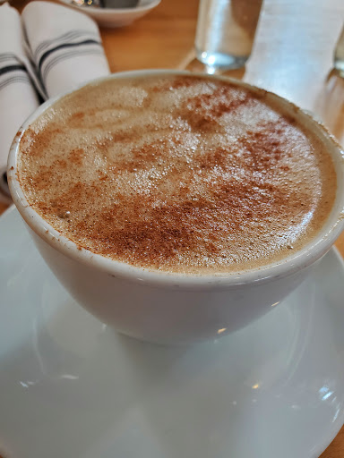 Food was decent. Didnt totally live up to the hype but it was good. A little pricey. Dont get duped by the offer of latte, cappuccino or specialty coffee...its just regular brew with cream and flavor mixed in and it very hot. Friendly and attentive server. Good, typical cafe environment in fun colors and modern decor. I would have given 3 stars but my teen and pre-teen LOVED it. They had a burger and biscuits and gravy. I had their Madame...turkey, ham and Swiss between thick cut French toast topped with an over-easy egg. UPDATE: As I walked past the open concept kitchen, one of the cooks was resting the cold well that held veggies scrolling or messaging on his cell phone. When I looked back within 30 seconds to see if I could see a manager to mention it to, he had returned to cooking activities without washing his hands.