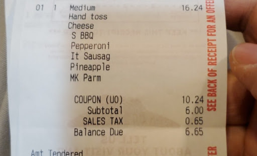 Ordered pizza from here for the first time to see how the pizza tasted. Pizza arrived cold, hard and greasy. I ordered it hand-tossed thinking it would be better but i was wrong. I usually order from Dominos and hand-tossed since the bread always comes out soft when I order it like that. Very disappointed. Going back to Dominos Pizza