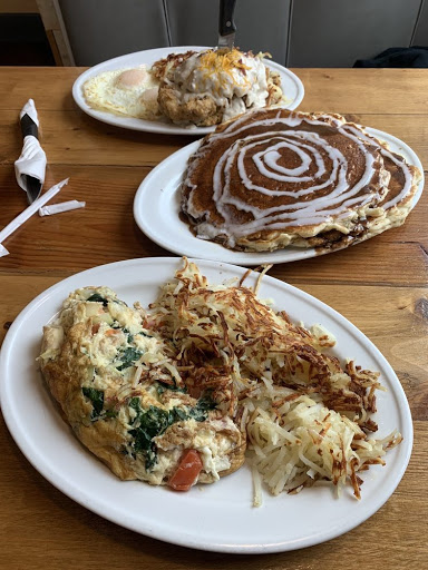Great food, enormous portions and very friendly staff. They make their own corn beef hash and it is fabulous. I love their Shamrock Benedict. My grandson loves the pancakes and my 89 year old mother who eats nothing much at all loves the Ice Cream Sundae Waffle and eats most of it! My husband usually gets whatever is on special because he trusts them to make something yummy!