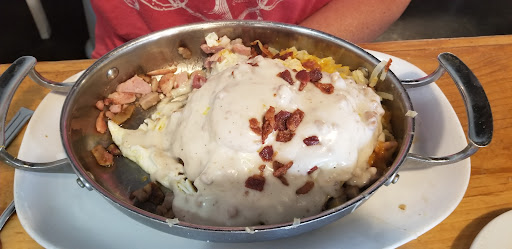 OMG, THIS PALCE AND SERVICE IS AWESOME! If you are having a skillet breakfast (comes with two large pancakes) you would be wise to plan on splitting it with someone. Do yourself a favor and ask for Andrea. Tell her, the old couple from Georgia, sent you. We returned a second time and it is still the most favorite breakfast place I have ever visited. I give it five stars, only because ten is not available.