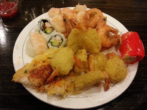I love this place! Really great selection. They have a hibachi station where you pick your ingredients and someone will cook it all up together with your choice of sauce (tip him). Also, there is sushi bar which they had over 10 kinds of sushi selection, it was great! Dont expect top notch cuisine, Chinese food is pretty tasty and fresh too, but for an all-you-can-eat place, its pretty good. Overall I give 5 stars for them. Will be back!