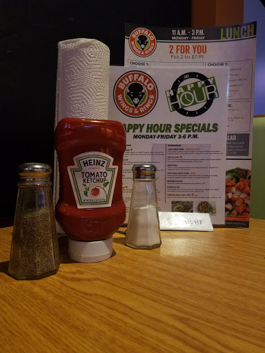 Had dinner here on March 2nd, around 7:00 PM. The restaurant was fairly full, but there were still a few open tables so we got seated within 5 minutes or so. We ordered our food right away since we were all hungry, it probably took 45 minutes to get our food, and all we ordered were wings and some rings. Nothing special about the wings, and the rings, blah, not good at all. The worst thing was the condition of the restaurant, the floors were a complete mess, food all over the place. There was a large group with a small child next to us, they kind of made a big mess because of their young child which happens. I bet the hostess and waitresses walked by and looked at it for 30 minutes without ever cleaning it up. Besides that, there were probably 3 or 4 other tables that never got bussed. Sorry to say we wont be back.