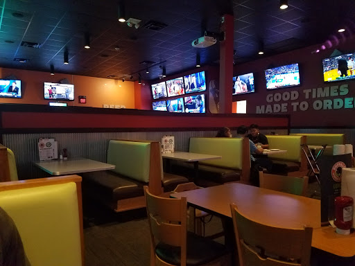 My first time coming here I waited about 8 minutes to be sat when the restaurant was empty. My waiter took forever to bring out our drinks and the same with our food. I asked for the appetizer first and he brought it out with my food anyways. Then afterwards I got severely sick from food poisoning. I had traditional wings and fried pickles. Their wings must have been undercooked because I was sick for 3 days. DO NOT GO HERE. Worst experience eating out ever!!!!!