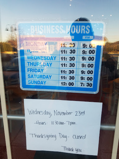 | Working: | 11:30AM–9PM 11:30AM–9PM 11:30AM–9PM 11:30AM–9PM 11:30AM–9PM 11:30AM–9PM 12–7:30PM |