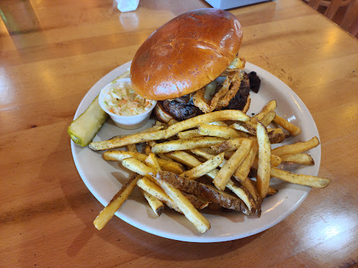 A great place to go in the heart of Crystal Lake. This used to be the old Brink Street and was bought and remodeled. The food is great, they are rated best burger and the pizza is very good also. There is an upstairs that is great for private parties. The servers are friendly, service is fast and the food is not typical bar food. The burgers are huge and good quality, they offer brisket and pulled pork among other savory dishes. Drinks are generous and priced average. There are always daily specials and there are video slots. Plenty of tvs line the walls so you never have a problem watching your favorite game. Highly Recommend