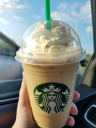 This Starbucks has a drive-thru. Otherwise, its just a normal Starbucks with friendly staff and the usual fare of products.