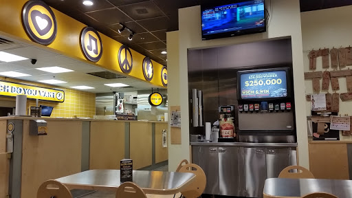 Ive been to this location a few times. The staff hasnt changed much, still look like they cant wait to clock out. Tables, drink machine are almost always dirty or needed a good wipe down. Both garbages are full but looks like they are short staffed today. Hope owners can turn the facility quality up. Food is par for which Wich. Make sure to park in the back not front.