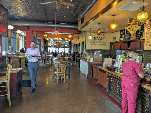 Potbellys is a great place, sandwiches are on point and their line management is extremely effective. There is a sign at one that says you will not wait longer than 8 mins in line...That means they know what they are doing. Their sandwiches are quality and they have a nice little place outside to eat. Live music is always pleasant and the staff is always helpful.