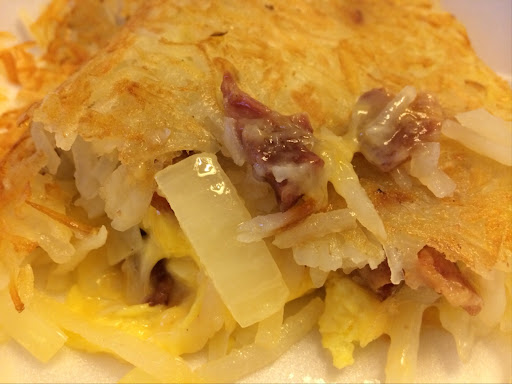 Ive got three words for you "Spuds Encased Hash-brown"! What? Ive never heard of those but apparently Gail has been making these for 20+ years. Just when I think Ive had every breakfast combination, something amazing like this comes around. So let me explain. They make omelets here which seems normal until you get it encased in a perfectly cooked crispy hash-brown. My delicious omelet is being hugged by a potato blanket. I loved it. This was the first meal I had for 2014 and I was glad I did. We were staying in a nearby hotel where the free breakfast was well free. We didnt want to start our year out like that. So we checked around and were lucky enough to find that Gails was open. How great was that! Open New Years morning in the middle of a snow storm with unplowed streets. If that isnt a sign of perfection, then I dont know what is. I called in our order and I was told to give them 30 minutes. When I walked in at 30 minutes our order was sitting on the front counter ready to go. I paid and was on my way. The inside looked nice and cozy. There were a few people eating inside but it was not crowded at all. Hey it was New Years morning, so Im sure many people were still hanging at home. These amazing omelets are called Spuds. I ordered the original spud which was bacon, onion & cheese. You can not go wrong with an original. It was really good plus I was having bacon in 2014. Happy New Year to me. I would definitely order this again. I am not usually in this area but it is worth a trip. My wife had the veggie version of the Spud. She really liked it also. The spuds came with a choice of side either toast or pancakes. We went pancakes but were so stuffed we could not even eat them. I know I was stuffed like an encased hash-brown. So if you are in the area looking for something that is out of the norm for breakfast, then get in here and try one of Gails Spud creations. You will be happy you did. I cant wait for my next one.