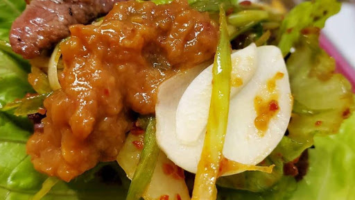 We had so much fun coming here for dinner with my mom! We tried bulgoki and bbq pork (pretty much korean bacon, yum!) To cook on a charcoal bbq on the table. It came with a huge variety of little bowls of vegetables and condiments. We especially loved the bean paste, the onion and lettuce salad and the spicy pickle! Everyone at the restaurant was so friendly and attentive- bringing more tea, offering ordering advice, and extra veggies. Ill definitely be back!