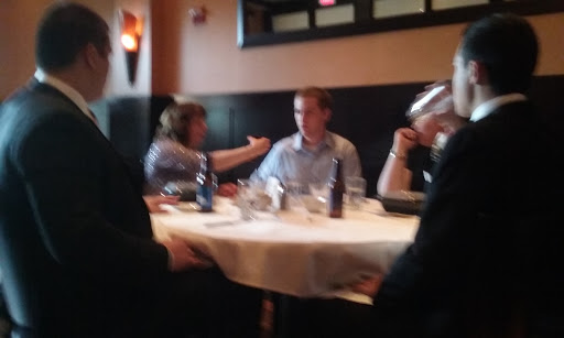 Male bartender had an attitude and made a cosmo incorrectly. Had female bartender make it and it was wonderful. Male bartender preceded to have an attitude when asked about the beer on tap. We let it go, went and ordered dinner in the dining room. Wait staff was wonderful and we ordered our dinner. The lobster bisque soup was basically broth, risotto was on special and had NO flavor at all, and the 3 ribeyes that were ordered were tough. We were just going to let it all go, since we were having a nice time and enjoying my birthday. Before I arrived my daughter brought a round ice cream cake to celebrate. She asked the staff to put it in the freezer and hold it until dessert. After dinner the waiter brought out this melted mound of mush! It never made the freezer. I asked to speak with the manager, out comes the male "bartender" from earlier, which now we find out is the manager. He stated that the only thing he could do is maybe give us a free dessert and then he rolled his eyes and walked away! We spent over $330.00 on a meal that was mediocre, a ruined ice cream cake and a manager who has no customer service at all. Awful experience, rude management