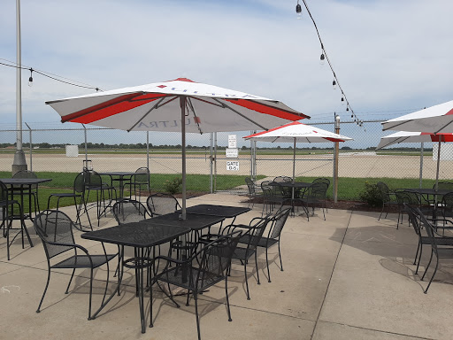 Good bar and grill style food unique view of the landing strip of the airport outside