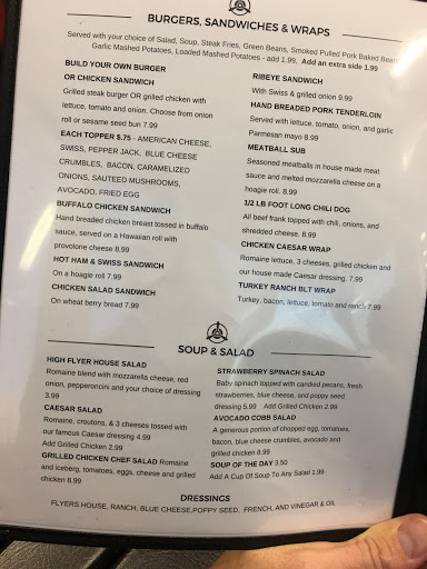 Love High Flyers! Great atmosphere for relaxing, celebrating or watching sporting events! We have tried several menu items and all have been wonderful!