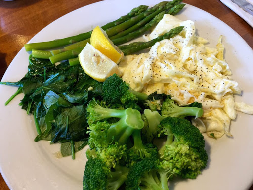 Im sitting in this restaurant right now. Our server, from Bulgaria, was very pleasant. She will get a 20 percent tip. Other than that bright moment, this place is a let down. We chose a seemingly upscale place for breakfast because we like our food cooked to a standard higher than McDonalds. Frankly, all I wanted was something not from a box. I thought that the veggie skillet might be a good choice. I asked if they make their hash browns themselves..... Nope, purchased frozen. Ok, pancakes? Nope, from a box. How about a baked potato? Again, no they dont have any. I settled for ribeye steak and a cheddar cheese omlet for $15.99 no potatoes but extra rye toast. The eggs were flat and dry. Clearly poured from a bottle. The cheddar cheese was a single presliced, packaged....... something. You could see the edges clearly outlined. And just one slice. Maybe just as well. They charged me an extra $1.49 for the extra toast and it was white toast instead of rye. Enough said, I think.