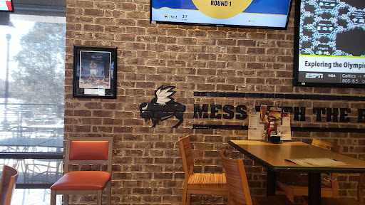 Worst bdubs ive ever been to and i been enjoying buffalo wild wings for like 10 years. Some ppl go there to eat, not watch the waitresses flirt w specific customers all night. Last time i sat at bar for over 15 min waiting to get served a drink watching the bartender flirt w some old guys for over 15 min, ignoring anyone else at the bar. After sitting there about 20 min without getting served i just up and left.The most recent time was not far off but i did get served fairly quick but my food comes out and she suggests i take it to go, as the waitress goes back to focusing on flirting w another customer. Fine Ill finish my one beer and take my food to go to go eat it cold elsewhere. Never have any bad experience at other locations just this one. Maybe ill try again here in a year but wont pay for garbage next time.