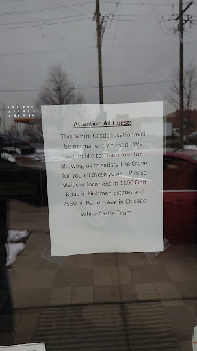 I was so excited to see this new location. At last a White Castle close to where I live (Mount Prospect, IL). When I entered this location for the first time, I notice a huge man sitting down lining up all his burgers as if he was challenging himself to eat about 20 white castles. He had already eaten like 14 with 6 more to go. He was taking one bite at time, slowly enjoying every taste. This is the kind of joint that attracts over weight customers. This guy was certainly one of them. I mean 4 burgers is a decent serving with fries and a drink(combo 1, my favorite) but this guy had to have 20.